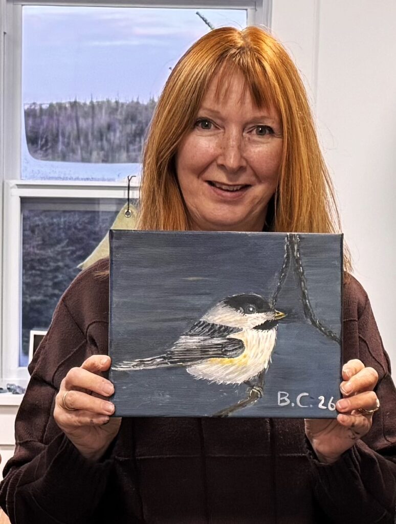 Weihnachten und den Jahreswechsel habe ich ohne bleibende Schäden überstanden. In Neufundland wird Weihnachten ja zwölf Tage lang zelebriert, und in den Dörfern besucht sich man während dieser Zeit gegenseitig. Früher kamen auch die Mummers oder Jennies vorbei, mit alten Klamotten verkleidete und maskierte Einheimische, die Musik machen und tanzen und die man mit Getränken und Snacks bewirtet. Dieses Jahr waren in unserem Dorf keine Mummers aktiv, vielleicht weil der Boden überall so eisig war. Ich durfte aber in Carolyn’s Malklasse Mummers in Acrylfarben auf die Leinwand bringen. Die Getränke und Snacks habe ich selbst verschlungen.